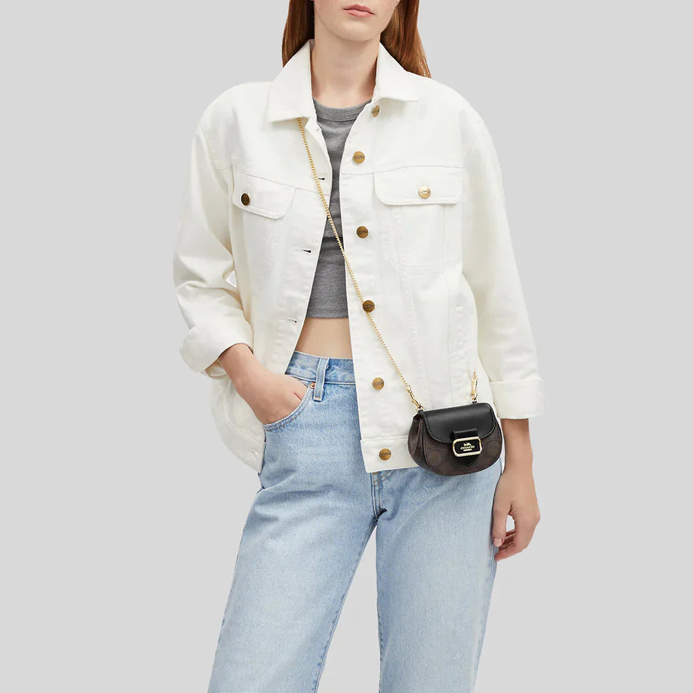 Detachable chain strap with 23 1/4" drop for shoulder or crossbody wear