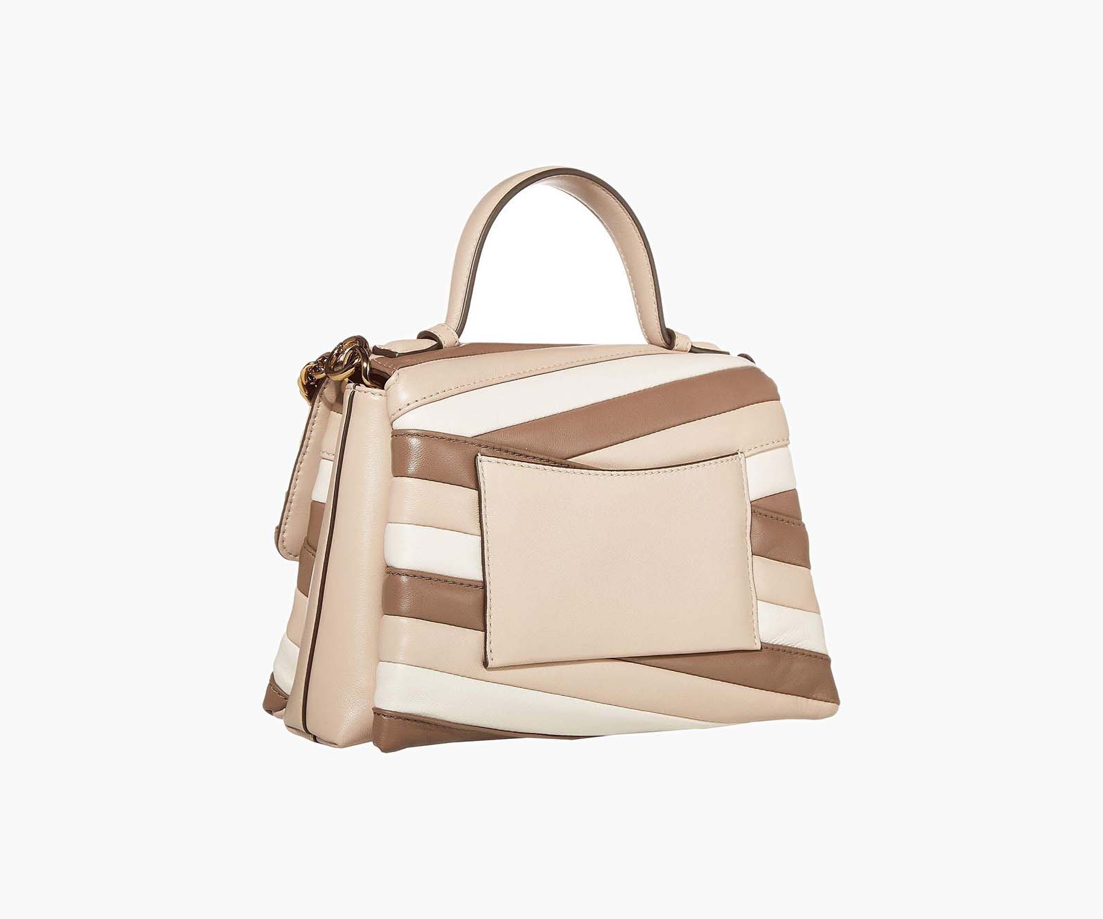 Chevron-quilting on the softest leather, with a beveled logo in brushed gold. The Kira Color-Block Satchel has two carrying options: a top handle and an adjustable crossbody strap.