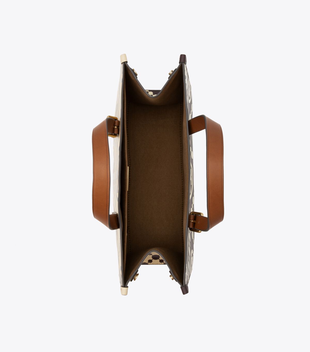 The small tote is crafted in contrast embossed leather, with a soft microsuede lining and adjustable shoulder strap. Each side of the tote features an inverse color combination, creating two looks in one. Every detail is considered, with special attention to function and versatility
